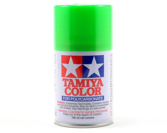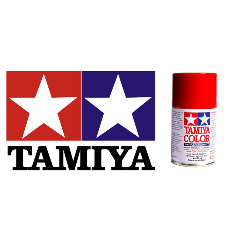 Tamiya PS spray paint comes in a range of vivid colours for your lexan polycarbonate rc car body shell.