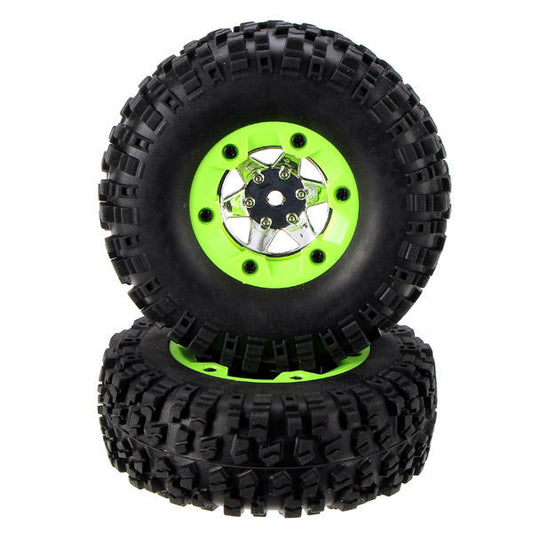 WLTOYS 1:12 All Terrain Tyre on Chrome Wheel w/ Green Beadlock 2pcs - WL12428-0070