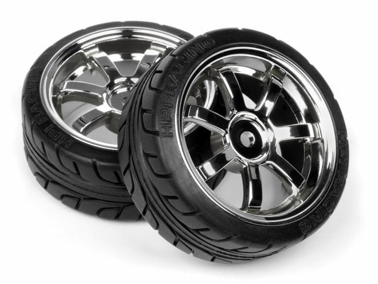 TRAXXAS Ribbed Drag Tyres on Chrome 5-Spoke Wheels 2pcs - 6975