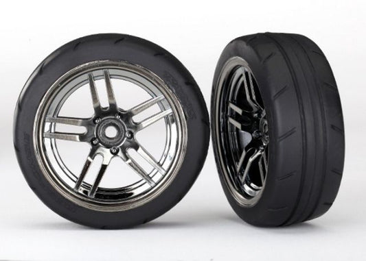 TRAXXAS S1 Slick Thermal Tyres on Black Chrome Split Spoke Front Wheels 17mm 2pcs - 6479