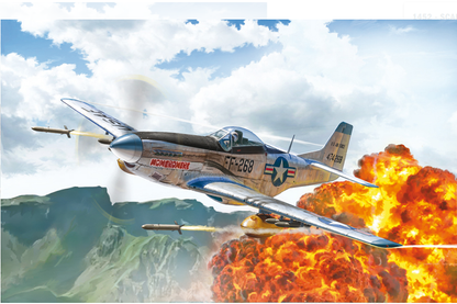 The North American single-seat fighter P-51 Mustang is, without a doubt, one of the most famous aircraft of the history and it is considered the best fighter powered with traditional piston engine of the Second World War. The P-51 was developed very quickly and was built around the Packard V12 engine, the well-known and reliable Rolls-Royce Merlin engine manufactured under license in the United States, capable of delivering more than 1,600 HP. Thanks to its engine, the Mustang was able to reach the speed of 700 Km/h. The P-51D, the most famous and successful version, was armed with six 0.5 M2 Browning machine guns installed in the wings. The Mustang was used in all war theaters, but it best known duty was to escort bombers in raids over Europe. At the end of the Second World War the "Mustang" continued to be deployed on various operational fronts. The F-51 (a new designation adopted in 1948 where F stood for fighter) also participated in the Korean War. It continued to be a highly reliable aircraft and thanks to its extensive range, could successfully carry out operations that the most modern jet aircraft of the period were unable to perform. Armed with rockets and bombs, it was used for ground attack missions and could also offer a close support capability to ground troops.