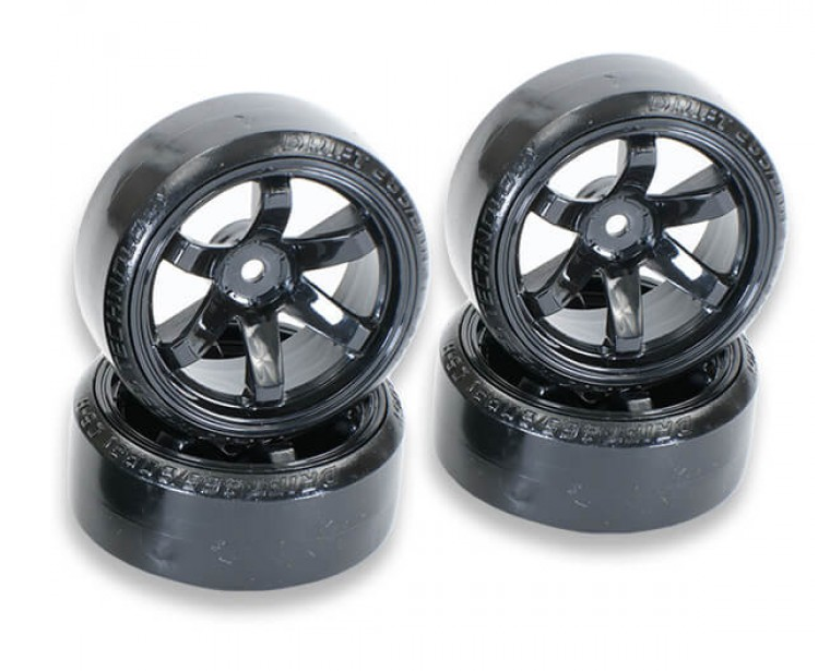 Set of four replacement wheels and drift tyres. 12mm hex.