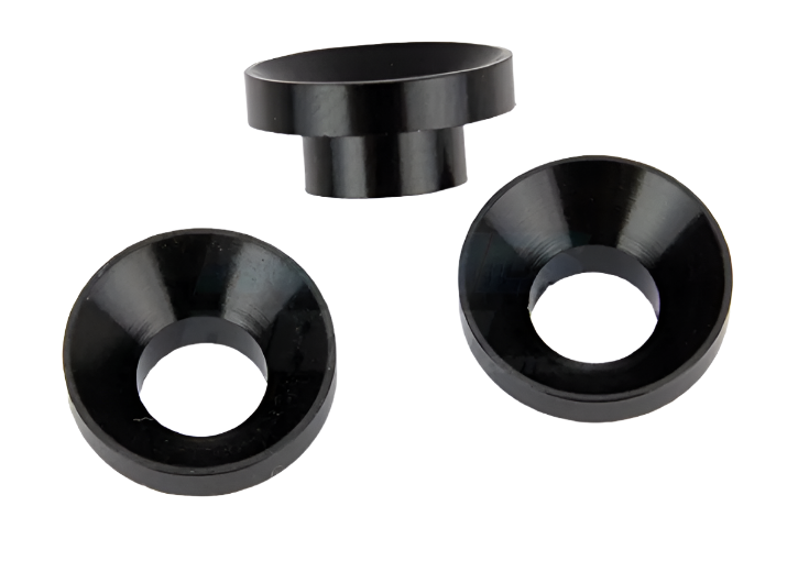 Replacement black anodised aluminium clutch mount spacers with recessed tops for countersunk screws.