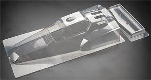 Tamiya Hornet body shell and wing cast in crystal clear lexan polycarbonate. Body is covered in overspray film and requires trimming, painting, body post holes and a decal sheet (#9495452). Window masks are not supplied but you can mask out the windows with painters tape.
