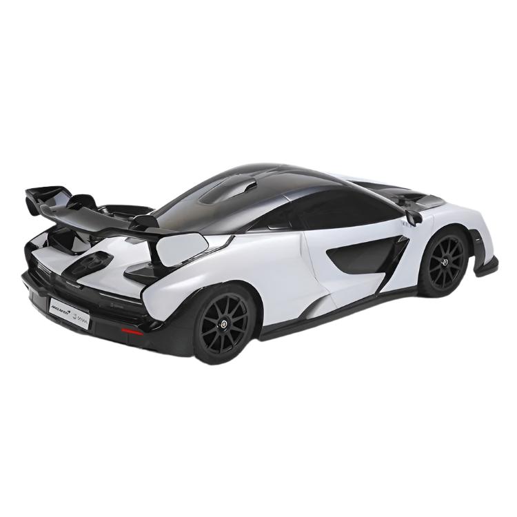 - The complex, aerodynamically honed form of the McLaren Senna is captured in polycarbonate with dedicated black ABS side mirrors and rear wing.