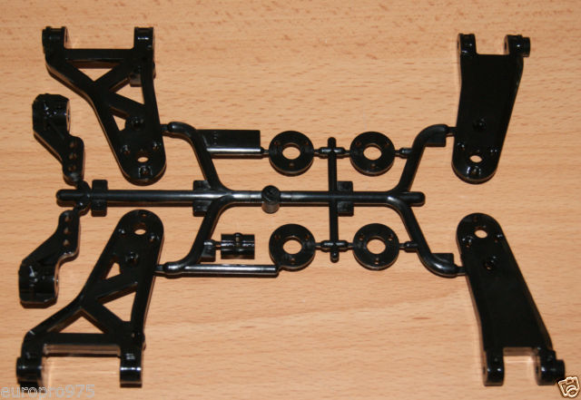 Replacement suspension arms and hubs for Tamiya Fox and Novafox models.