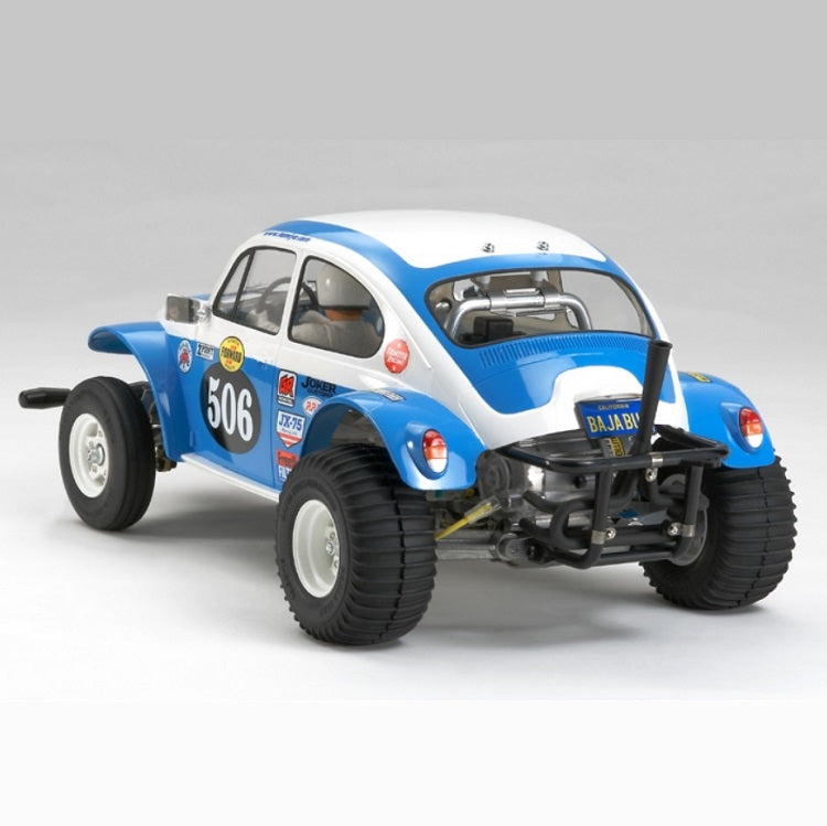 Originally released in 1979, the R/C Sand Scorcher was greatly received from fans around the world with its humorous form and superb mechanism. Keeping true to the basic layout of the original while incorporating many refined parts, this re-released version of the Sand Scorcher will remind you of the original. This model realistically reproduces the unique form of the buggy which was seen at the one-make race at the “Baja 1000” in California, USA. The body is molded in white polystyrene and can be painted with Tamiya plastic model paints. The rear-wheel drive 2WD chassis features realistic and aggressive driving performance that will no doubt excite you.