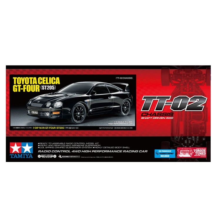 Tamiya classic car R/C replicas are a fan favorite! This assembly kit recreates another 1990’s era favorite with the addition of the Toyota Celica GT-FOUR (ST205) on our easy to assemble and drive TT-02 chassis.