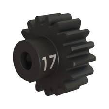 The heavy-duty 17-tooth (32-pitch) pinion gear is machined from hardened steel for extra-long life. The gear fits 3 mm motor shafts and includes set screw. Traxxas pinion gears let you fine-tune the performance of your Traxxas model. Changing gear ratios can help balance acceleration and top speed for different running conditions. Please consult your owner’s manual for more information on recommended gearing options for your specific model.