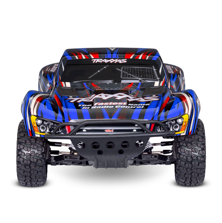 Traxxas Slash puts you in the driver’s seat for intense fender-to-fender short course racing action at the track, or in your own backyard. Slash’s BL-2s brushless power system delivers effortless power for all-day fun with a more responsive throttle and powerful acceleration. New Extreme Heavy Duty Upgrade parts allow Slash to take brutal punishment in stride. Slash's fully adjustable track-ready suspension delivers most authentic short course racing experience possible.