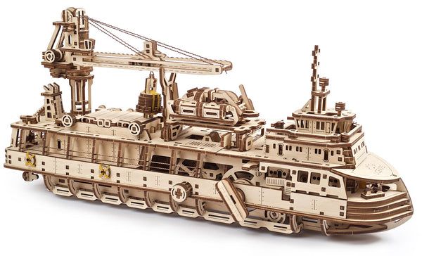 Feel the salty wind sailing you towards future discoveries with the Research Vessel from Ugears!
